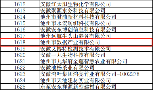 近日安徽省工業(yè)和信息化廳發(fā)布了2024年度專精特新中小企業(yè)公示名單集團所屬池州市數(shù)據(jù)產業(yè)有限公司榮獲2024年度安徽省“專精特新”中小企業(yè)。