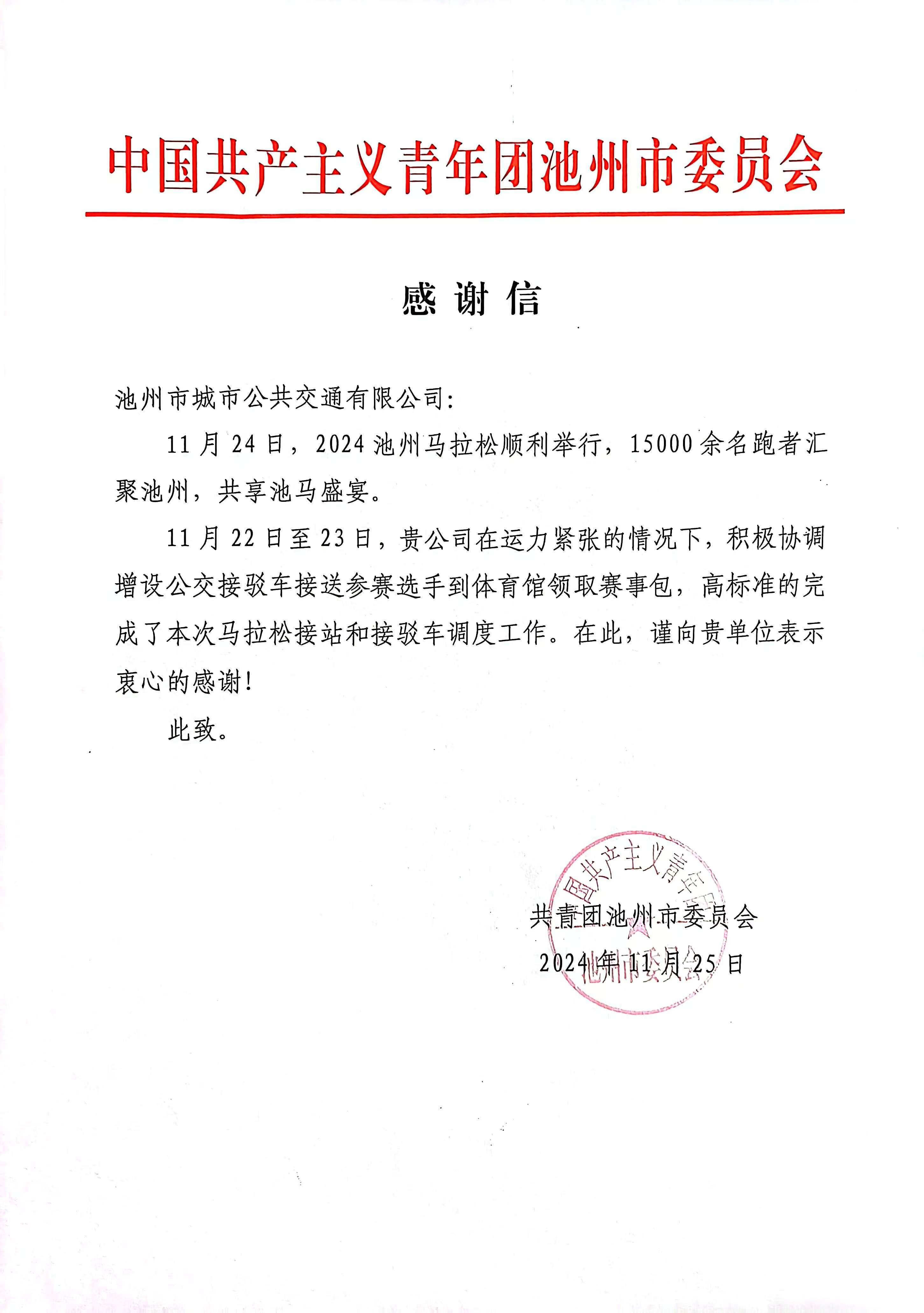 11月22日至24日,池州市城市公交累計(jì)投入馬拉松服務(wù)運(yùn)力94臺(tái),累計(jì)發(fā)出班次331個(gè),累計(jì)服務(wù)乘客約1.1萬人次。這些數(shù)據(jù)背后,是池州市城市公交對(duì)池馬“馬”力全開的支持。此次馬拉松的志愿服務(wù)工作展示了城市公交優(yōu)良的工作作風(fēng),受到了共青團(tuán)池州市委、池州馬拉松組委會(huì)的表揚(yáng)和廣大參賽選手的充分認(rèn)可。未來,我們將繼續(xù)秉承志愿精神,不斷提升自己的專業(yè)素養(yǎng)和服務(wù)能力!