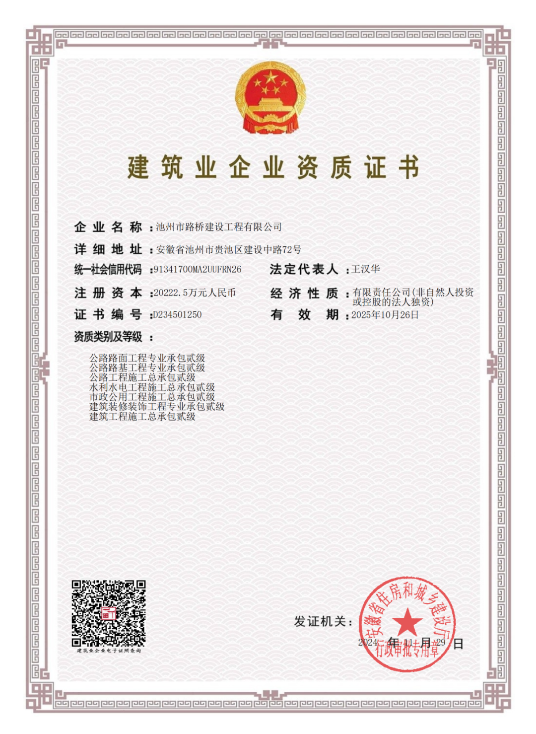 近日,池州市路橋建設(shè)工程有限公司獲批水利水電工程施工總承包資質(zhì)貳級(jí),這是池州市屬國(guó)有企業(yè)建筑施工板塊在此專業(yè)領(lǐng)域的零的突破。