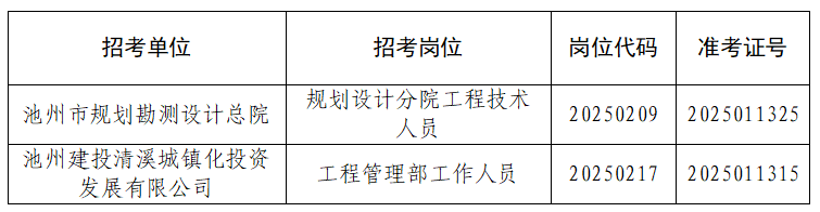 根據(jù)《池州市投資控股集團2025年公開招聘工作人員公告》要求,由于入圍體檢的考生中有部分人員自動放棄或不合格產(chǎn)生了人員空缺。現(xiàn)按《公告》要求,視崗位情況進行遞補。現(xiàn)將入圍遞補體檢情況公告如下: