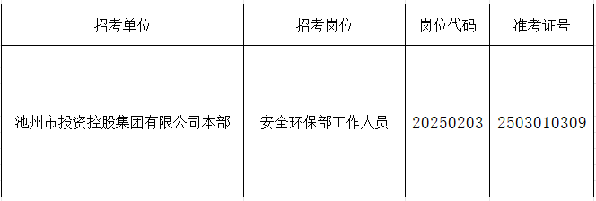 根據(jù)《池州市投資控股集團(tuán)2025年下半年公開招聘工作人員公告》要求,由于入圍現(xiàn)場(chǎng)資格復(fù)審的考生中有部分人員自動(dòng)放棄或不合格產(chǎn)生了人員空缺,現(xiàn)按《公告》要求,在報(bào)考同崗位的考生中按筆試成績(jī)從高分到低分的順序依次遞補(bǔ),成績(jī)出現(xiàn)并列者一并進(jìn)入資格復(fù)審,現(xiàn)將入圍遞補(bǔ)資格復(fù)審情況公告如下: