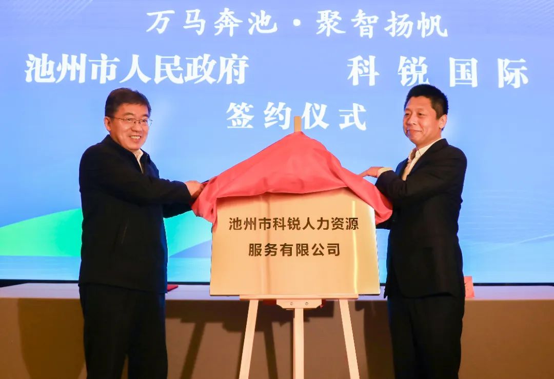 4月2日上午,池州市政府與科銳國(guó)際合作交流座談會(huì)暨合作項(xiàng)目簽約儀式舉行。市委書(shū)記朱浩東、科銳國(guó)際董事長(zhǎng)高勇出席并講話(huà),共同為池州市科銳人力資源服務(wù)有限公司揭牌。市領(lǐng)導(dǎo)史孺牛、廖強(qiáng)、李軍等參加。